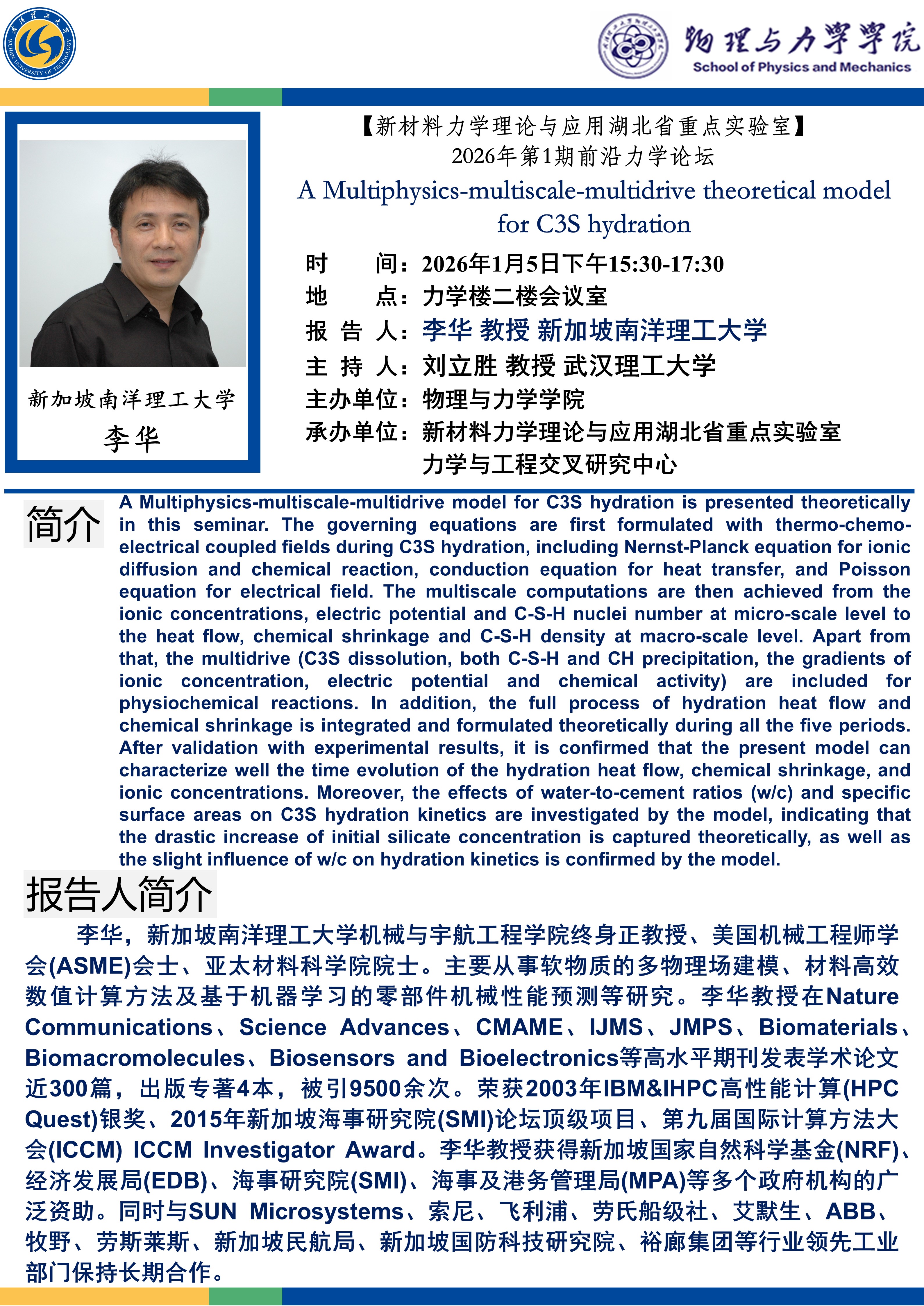 【成人无码影片 】南洋理工大学李华教授讲座 A Multiphysics-multiscale-multidrive theoretical model for C3S hydration 发布时间:2026-01-05