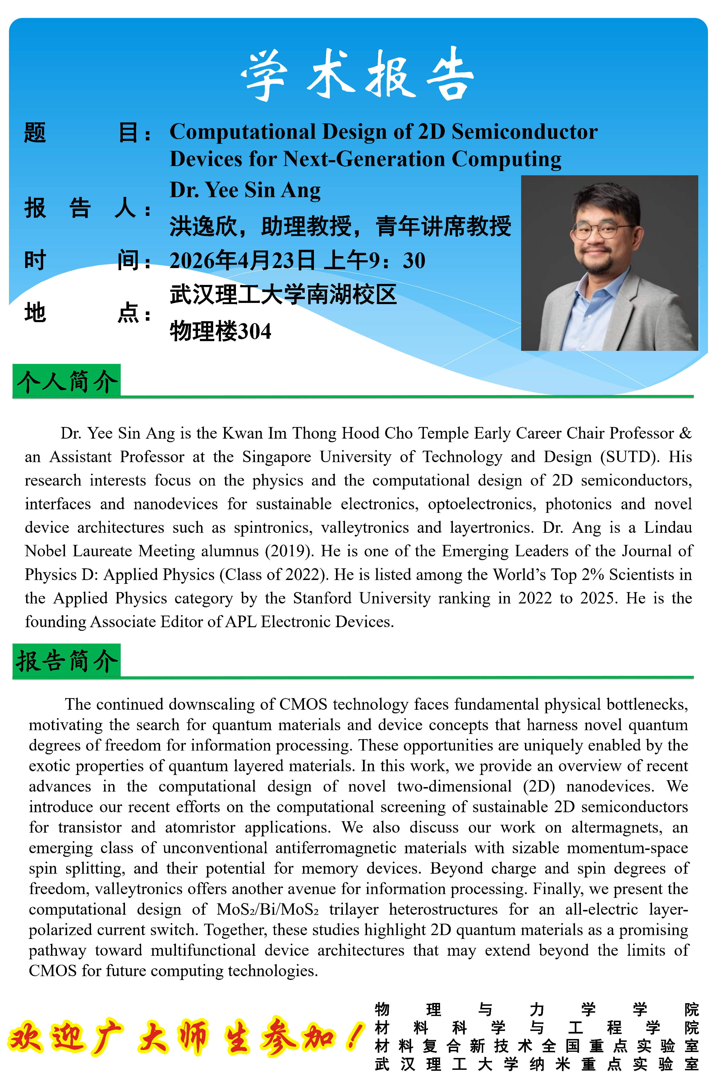 【成人无码影片 】Computational Design of 2D Semiconductor Devices for Next-Generation Computing 发布时间:2026-04-20