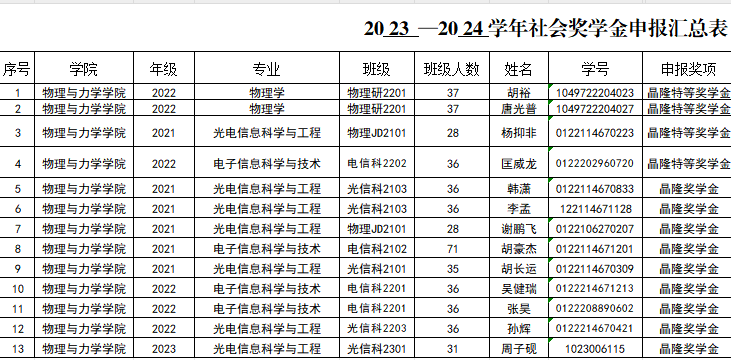 现将拟初评“晶隆奖学金”的学生名单予以公示: