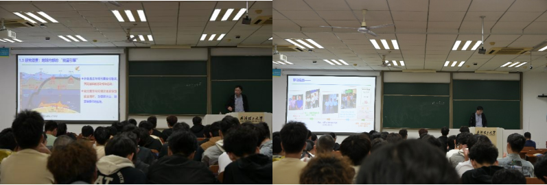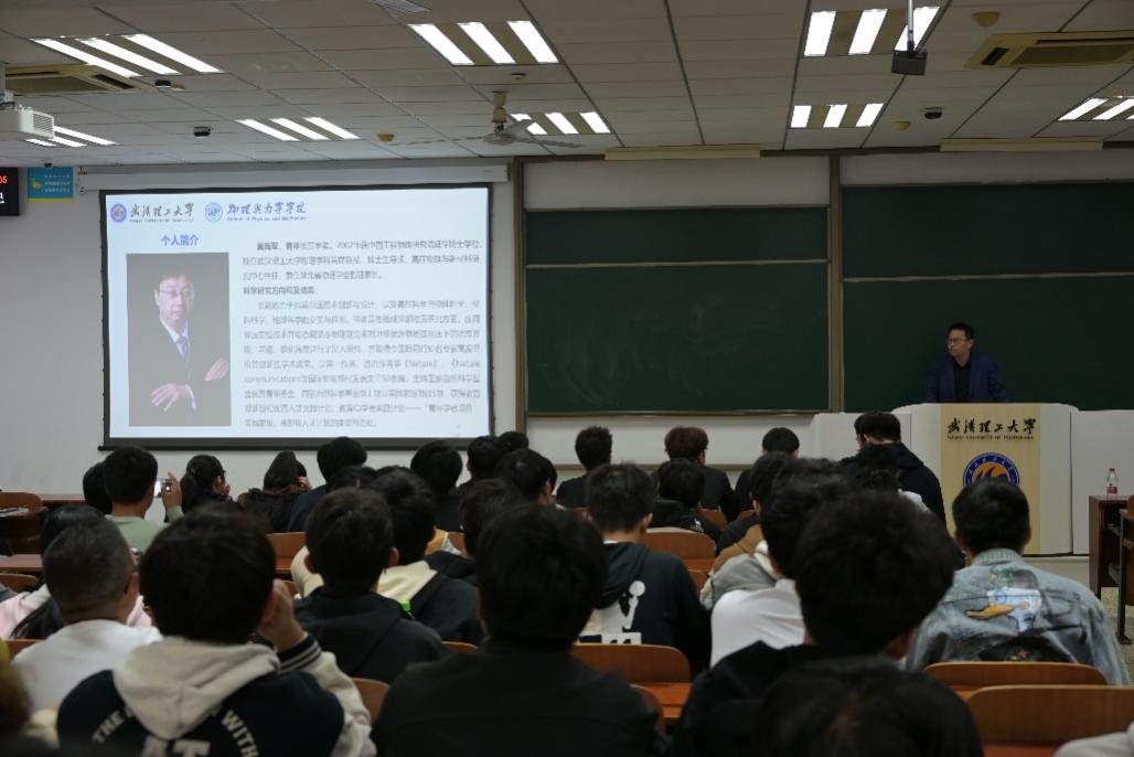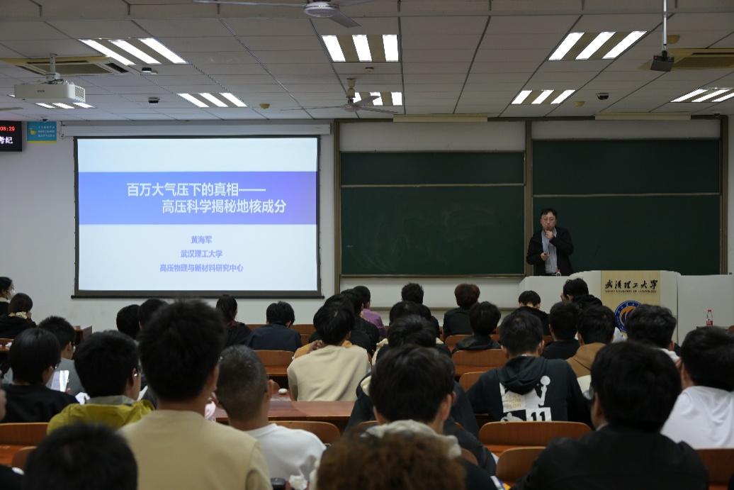 黄海军教授首先从地球科学的基础知识科普入手,由浅入深讲述了自己的研究背景。在核心内容分享中,他深入剖析了高压科学研究面临的多重挑战:从超高压实验设备的技术瓶颈,到极端条件下物质性质探测的精度难题,再到跨学科知识融合的复杂要求。随后,黄教授结合自身求学与科研经历,向在场师生送上殷切寄语:科研之路从无捷径,需要保持勤奋钻研的态度,主动向优秀导师请教,找准研究方向并持之以恒,才能在学术道路上稳步前行。他鼓励同学们既要夯实专业基础,也要敢于挑战未知,在追求科学真理的过程中实现个人价值与学术理想。